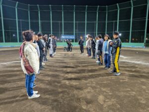 遅れてくる方もいるので、一旦整列して試合開始!![]()